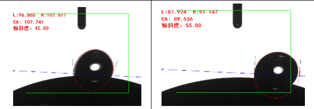 車載攝像頭要求避免水滴聚集,需要克服水珠聚集而導(dǎo)致全景攝像頭取景模糊的缺陷,因此對(duì)于攝像頭滾動(dòng)角的要求非常高。傾斜型接觸角測(cè)量儀可有效的測(cè)量材料表面滾動(dòng)角,有效表征產(chǎn)品表面前進(jìn)后退角,可以評(píng)判產(chǎn)品表面疏水性能。